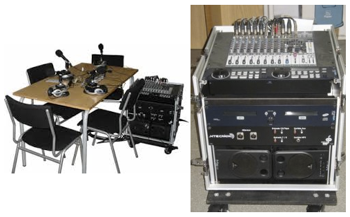 La maleta XTEC-Ràdio inclou l’equip necessari per a produir programes radiofònics. Simula un estudi de producció de ràdio amb una taula de mescles per combinar les entrades de cinc micròfons, i altres entrades de so (com 2 CD integrats), efectes especials, etc.