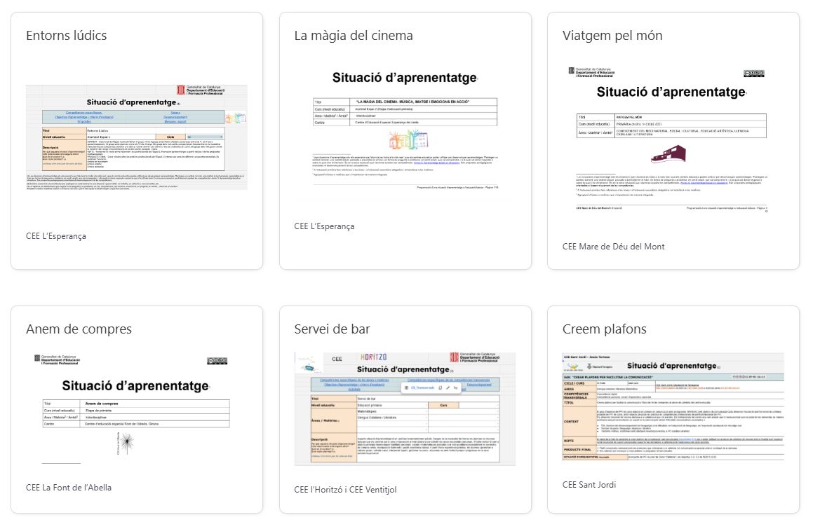 En aquest enllaç del Nodes “El nou currículum” trobareu sis propostes de SdA elaborades per centres del Grup de Treball de Centres d’Educació Especial.