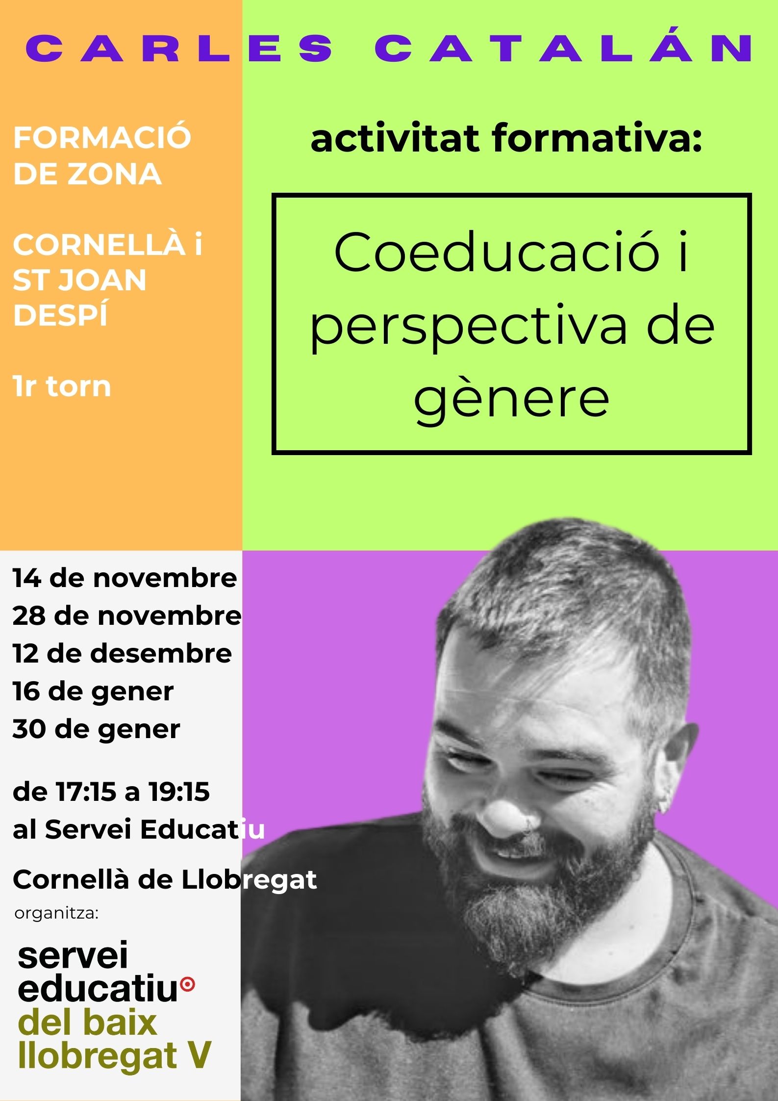 Nova formació sobre Coeducació i perspectiva de gènere que conduirà l’expert Carles Catalán. La primera sessió tindrà lloc el proper dijous 14 de novembre a les 17:15 hores a la seu del Servei Educatiu del Baix Llobregat 5. Us recordem també les dates de les sessions: 14/11, 28/11, 12/12, 16/1 i 30/1.