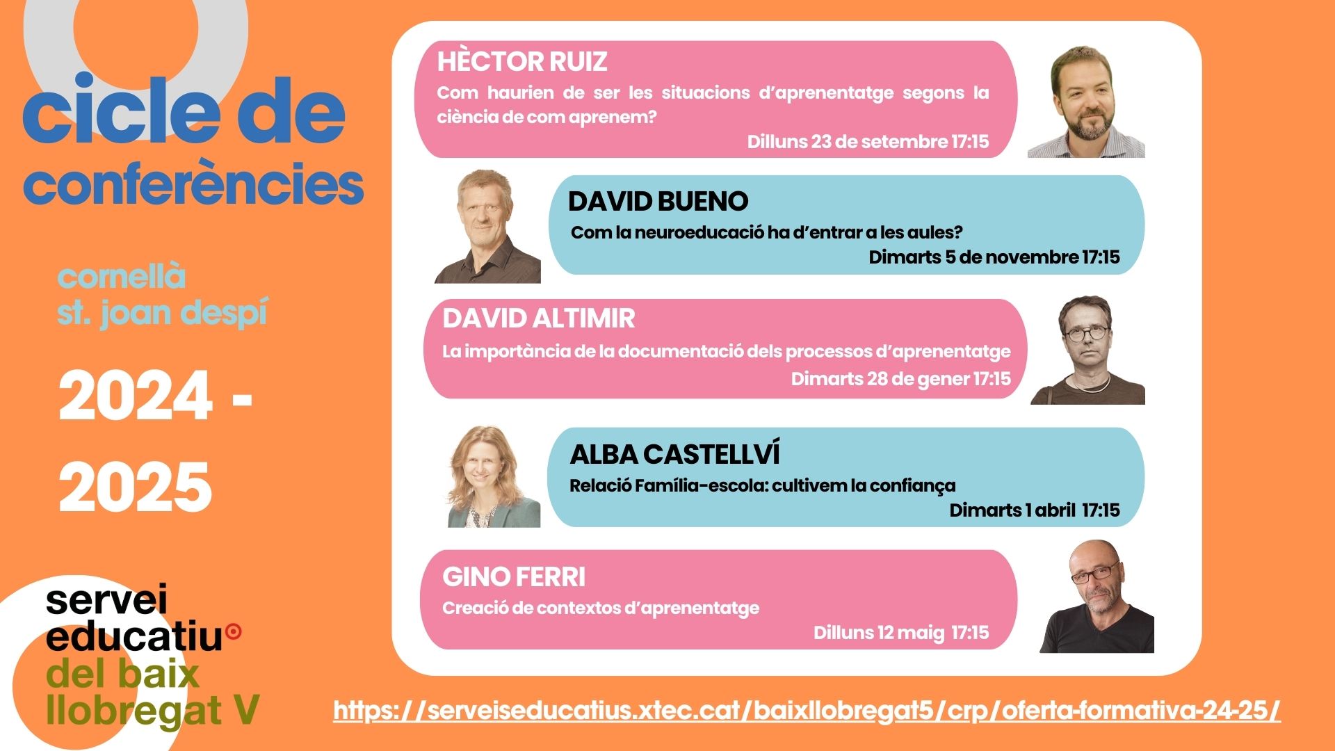 La primera conferència, titulada “Com haurien de ser les situacions d’aprenentatge segons la ciència de com aprenem?”, serà impartida per Héctor Ruiz Martín, director de la International Science Teaching Foundation, biòleg i investigador especialitzat en psicologia cognitiva de la memòria i l’aprenentatge.