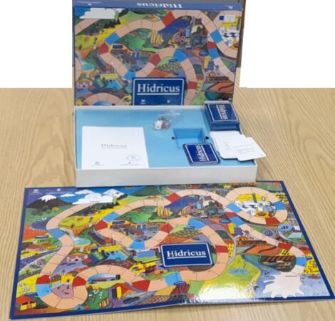 “Hídricus” és un joc de taula per al treball de diferents aspectes relacionats amb l’aigua: cicle natural de l’aigua, ús domèstic i industrial responsable, hàbits quotidians, estalvi, la seva història i geografia, ecologia, gestió civil l’aigua… Està especialment adreçat als cicles mitjà i superior d’educació primària, així com als cursos inicials d’educació secundària.