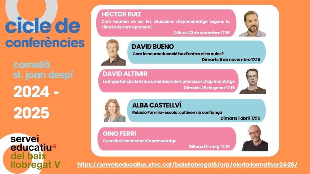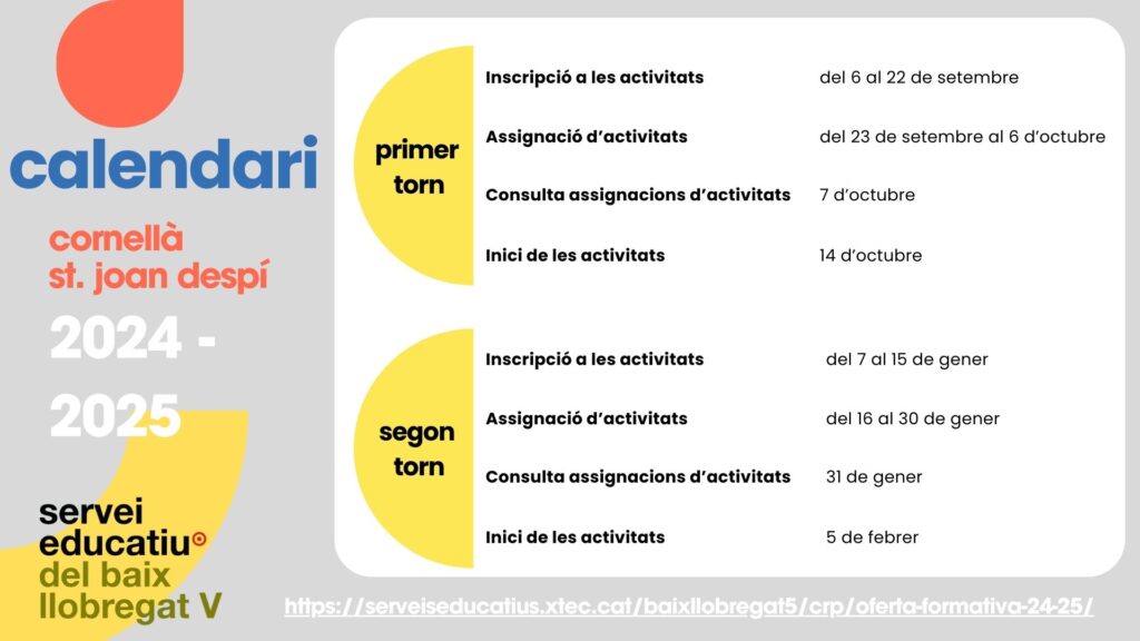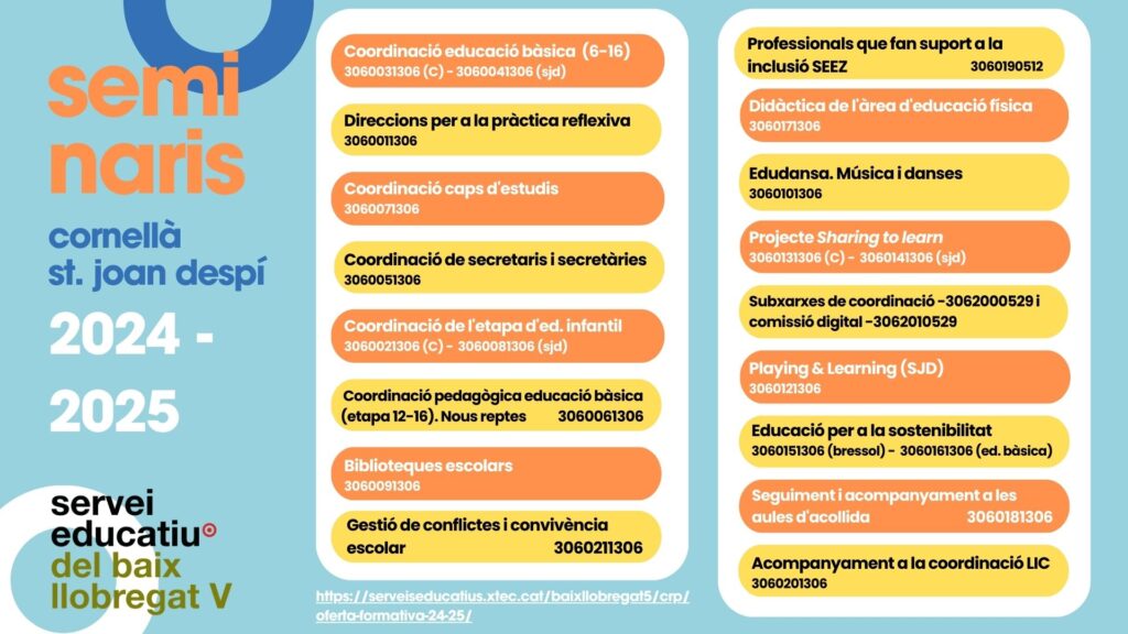 - Inscripcions: del 6 al 22 de setembre: ENLLAÇOS INSCRIPCIONS ACTIVITATS FORMATIVES 24-25