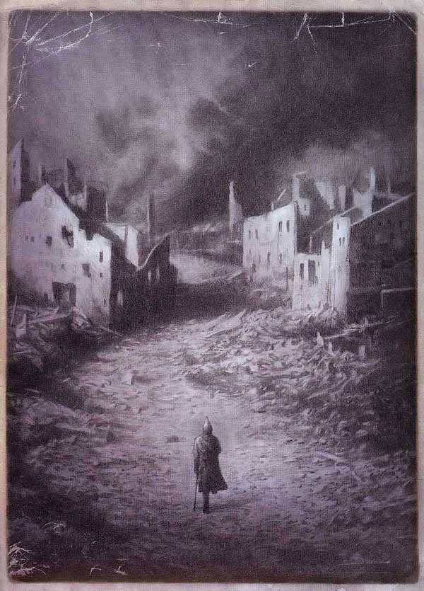 • La tercera història és la d’un vell soldat que va viure una guerra, en la qual va perdre una cama. La seva fugida està relacionada amb les condicions de vida que es donen en un país que ha sofert una guerra i ha quedat completament destruit.