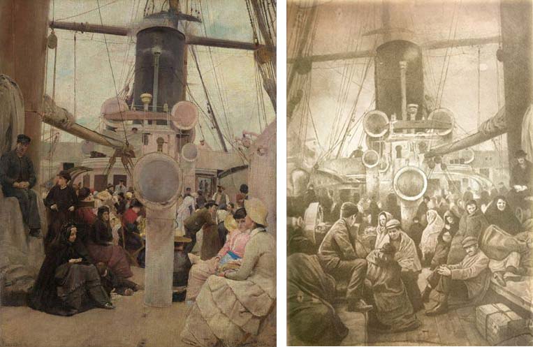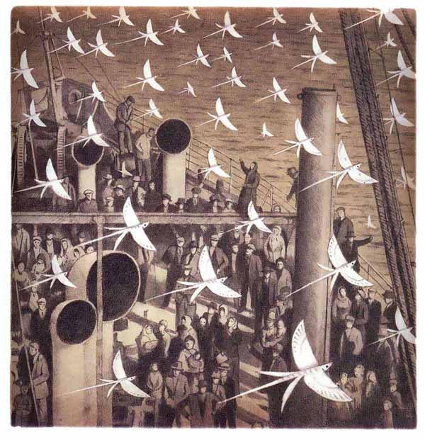 – Alguna de les il•lustracions beu de pintures, com la dels immigrants al vaixell, que ret homenatge al quadre de Tom Roberts (1856-1931), Coming South.