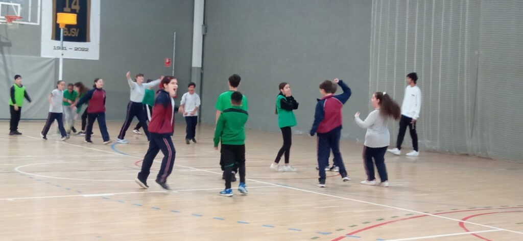 L’alumnat del cicle superior, en equips mixtos de nens i nenes, han jugat partits de 32 minuts repartits en quatre parts de 8 minuts cadascun i fent un minut de descans entre les parts.