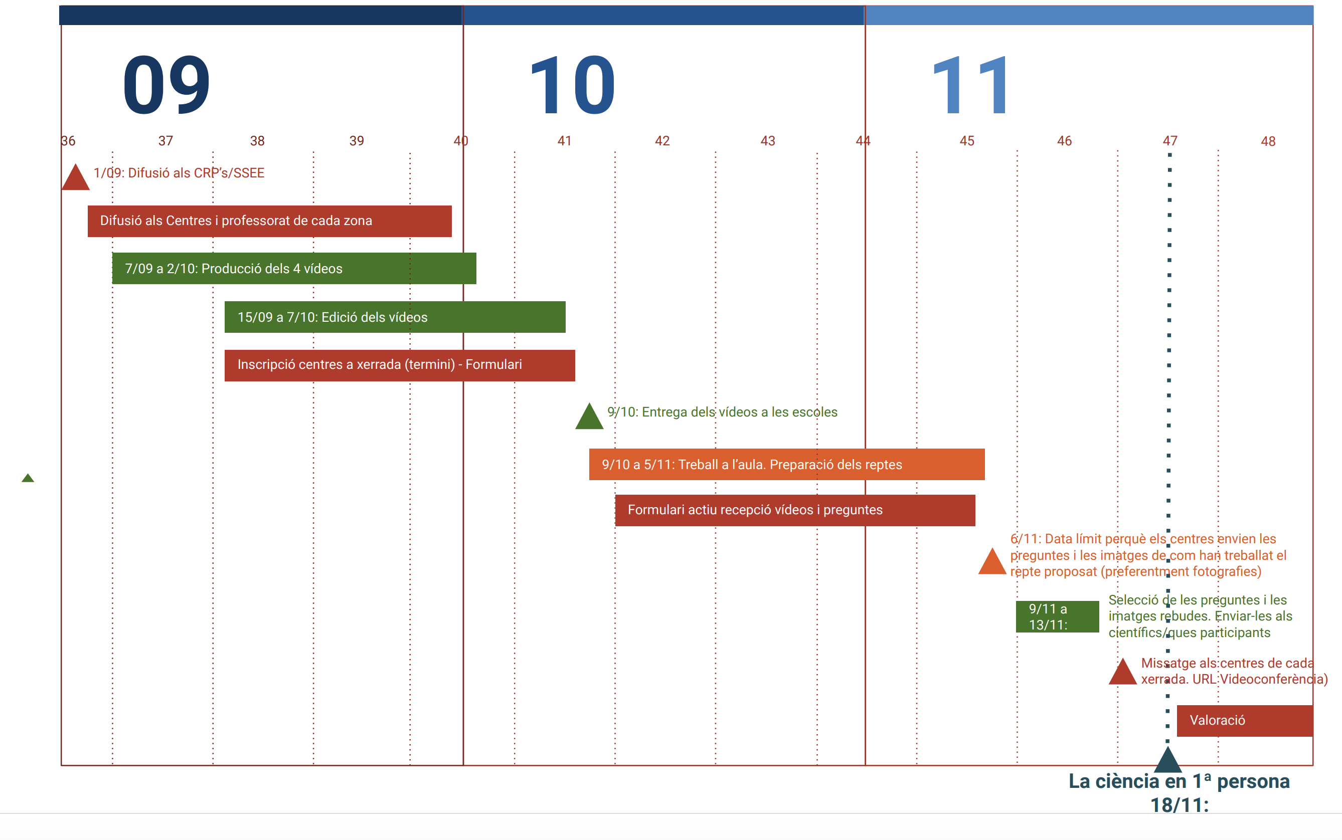 ● 6 de novembre: data límit perquè els centres envien les preguntes i les imatges de com han treballat el repte proposat (preferentment fotografies).