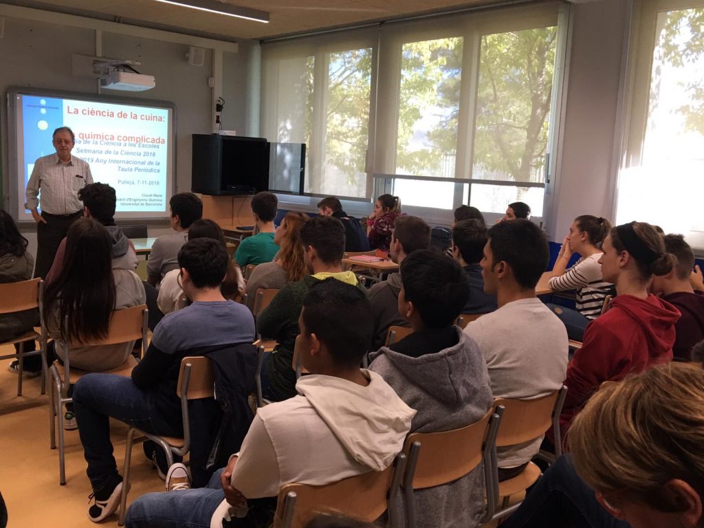 Avui s’ha celebrat el cicle de conferències “La ciència en primera persona” en el marc de la “Setmana de la ciència” . A la nostra demarcació, enguany és l’INS de Pallejà el centre on s’ha fet la conferència del Dr. Claudi Mans sobre la taula periòdica i els elements. El Dr. Claudi Mans l’ha emmarcada