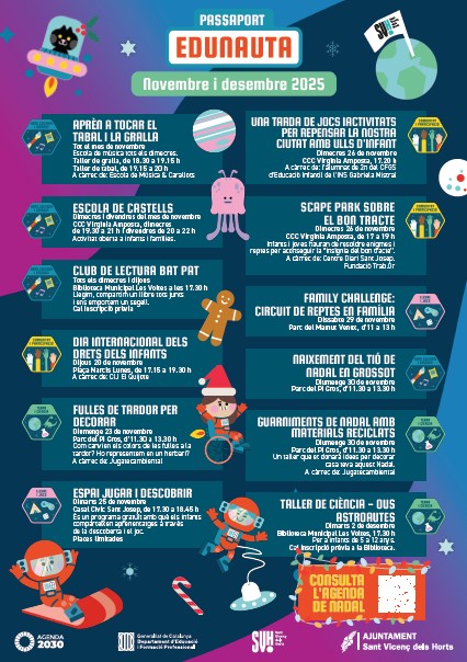 Mensualment penjarem el programa d’activitats que els joves de 3 a 12 anys tenen a la seva disposició. Programa d’activitats Novembre 2024 a Sant Vicenç dels Horts