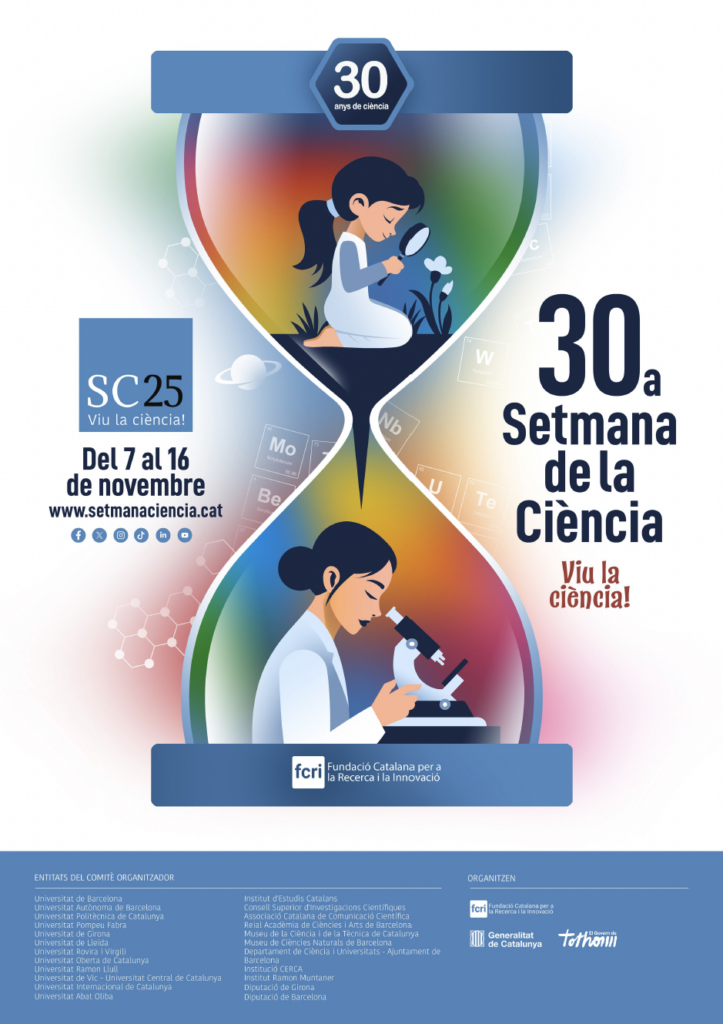 Us informem que la Fundació Catalana per a la Recerca i la Innovació (FCRI), amb el suport del Departament d’Educació i Formació Professional, organitza la 30a edició de la Setmana de la Ciència, que se celebrarà del 7 al 16 de novembre, arreu de Catalunya. L’activitat “La ciència en primera persona” que es celebrarà el […]
