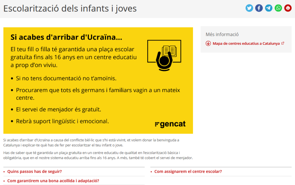 Al portal de centre, ja està disponible el protocol d’acollida d’alumnat desplaçat de la guerra de Rússia contra Ucraïna als centres educatius https://web.gencat.cat/ca/ucraina/persones-refugiades/escolaritzacio-dels-infants-i-joves/ + Informació sobre l’escolarització dels infants i joves aquí