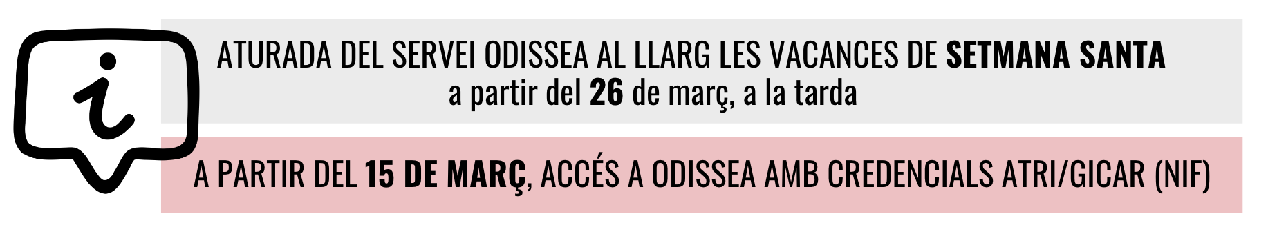 A partir del 26 de març de 2021 s’aturarà els funcionament dels serveis d’Odissea, per. tasques de manteniment i actualització.