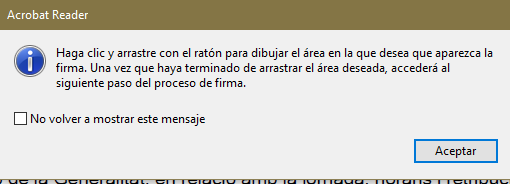 - Potser apareixerà un avís indicant que hem de marcar la zona on volem inserir la signatura