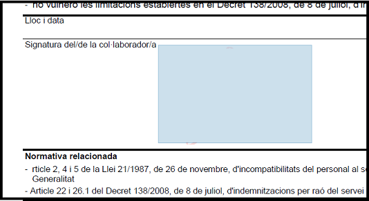 - Ens desplacem pel document fins a la zona de signatura (o el lloc desitjat) i hi dibuixem un rectangle