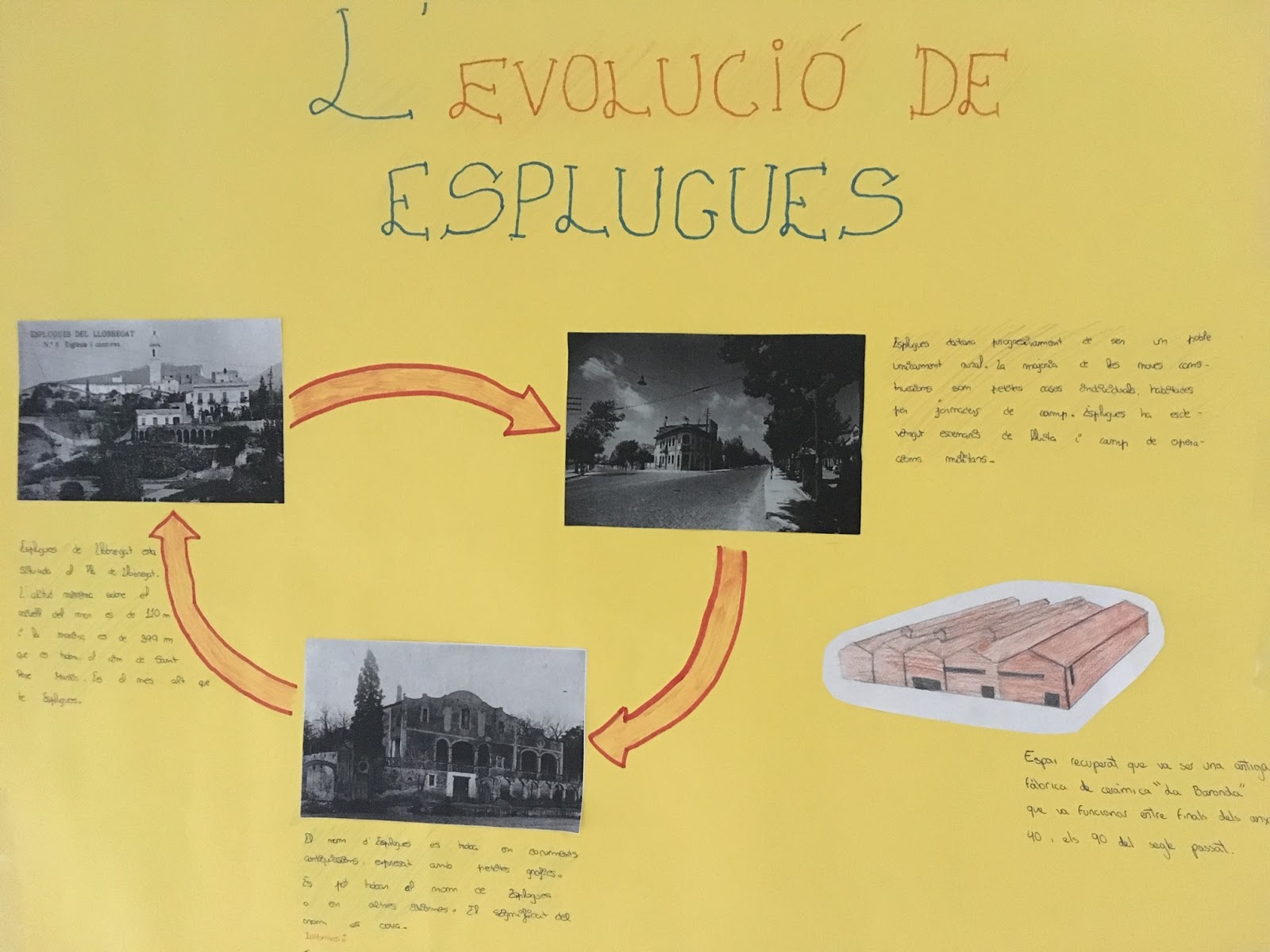 Les noies i els nois de 4t d’ESO consulten directament les fonts primàries a l’Arxiu Municipal d’Esplugues de Ll i investiguen sobre els orígens de l’element apadrinat; beuen de les fonts orals per tibar del fil de memòria històrica i les emmarquen en els diferents contexts  històrics i culturals; fan càlculs matemàtics sobre de la interpretació dels plànols; aprenen emprenedoria a partir del referent empresarial que va ser la fàbrica; visiten l’espai per conèixer-ne l’ubicació i el seu ús actual; geolocalitzen l’indret amb la finalitat de difondre el patrimoni al Mobile History Map