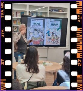 A la fantàstica nova biblioteca de l’INS La Mallola d’Esplugues de Llobregat, en Màrius Serra ens va guiar en un viatge des de la decodificació al plaer de la lectura i ens ha recordar que la lectura és una eina màgica per a transformar les nostres aules i obrir la ment. Hem parlat de fantasia, de sentit crític, de creació conjunta de significats i, d’amor per les paraules i de l’immens plaer que ens provoca jugar amb elles.