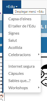 I una sèrie de recursos destacats tant d’infantil com de primària, d’ESO de Batxillerat d’FP i un desplegable +EDU que recull materials d’acollida, celebracions …