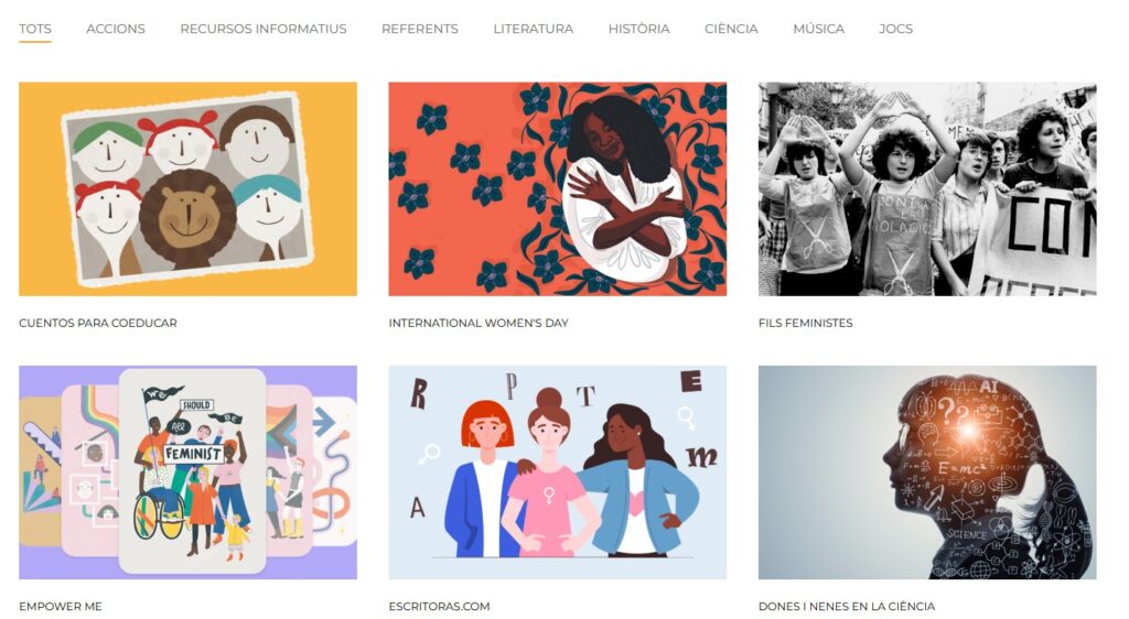 - Des de l’Institut Català de les Dones ens fan arribar una proposta lúdico-divulgativa per a treballar amb l’alumnat de primària i secundària els fets més rellevants del panorama català, estatal i internacional en la lluita pels drets de les dones arran del Dia Internacional de les dones (8 de març).Es tracta del joc “Feminisme a taula” (taulell de joc, instruccions) i de les 100 fites seleccionades del feminisme que us enllacem a continuació: