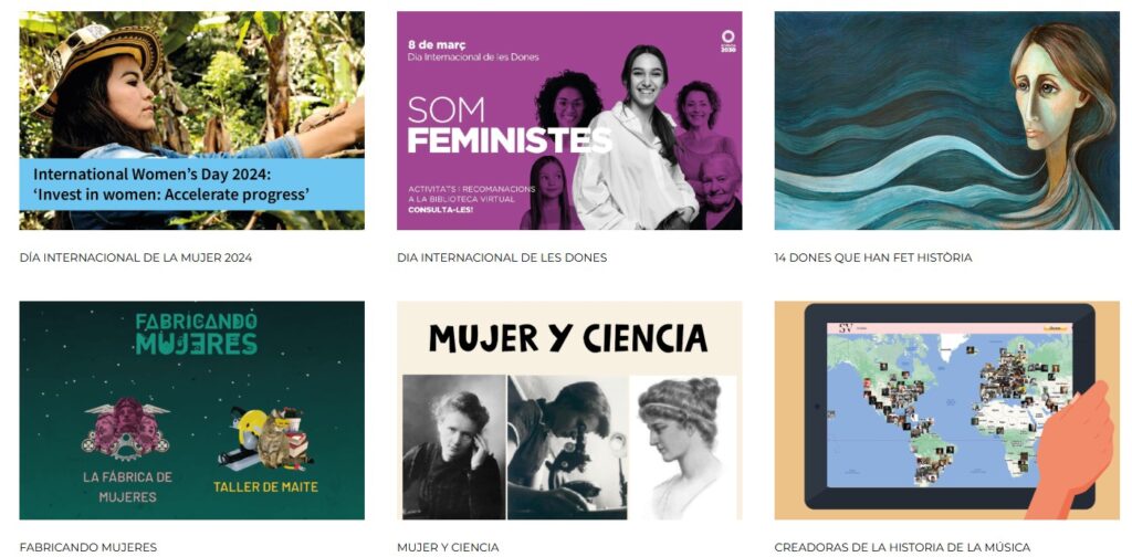 - Guia de recursos 8 de març. De l’Institut Català de les Dones, en què es referència el Recull temàtic, Guia de lectura, entre d’altres