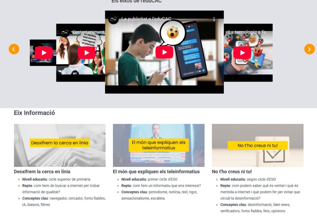 Amb aquests recursos podeu tractar qüestions com la CERCA D’INFORMACIÓ a primària o fer un projecte d’INTEL·LIGÈNCIA ARTIFICIAL per a l’alumnat de secundària al llarg de tot el curs. Podeu reflexionar sobre com ens expliquen el món els TELEINFORMATIUS o com percebem la realitat a través de la FICCIÓ. També a aprendre a detectar la DESINFORMACIÓ i a desemmascarar les tècniques de la PUBLICITAT. I sempre amb propostes per fer PRODUCCIONS AUDIOVISUALS: contes pels més petits, i tràilers i edició de vídeo amb IA pels més grans.