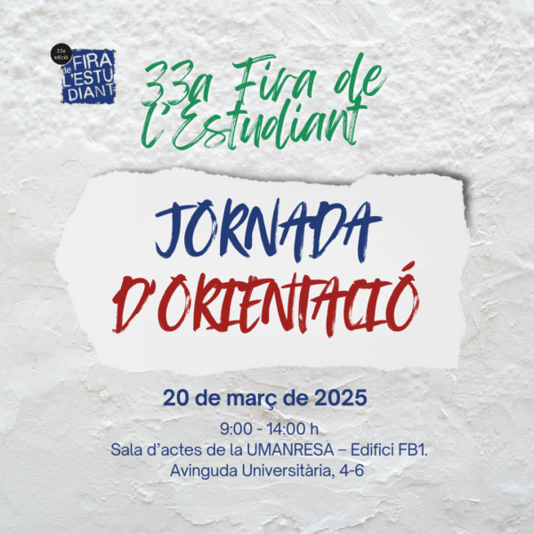 L’objectiu d’aquesta jornada és facilitar i compartir recursos per a l’orientació acadèmica i professional.