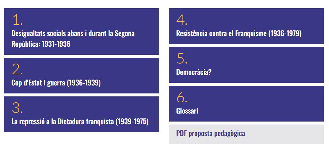 Recurs pedagògic per a ESO i Batxillerat concretat en una pàgina web amb material didàctic, fragments d’entrevistes a supervivents de la Guerra Civil i el franquisme, propostes d’activitats per als alumnes i una petita guia docent.