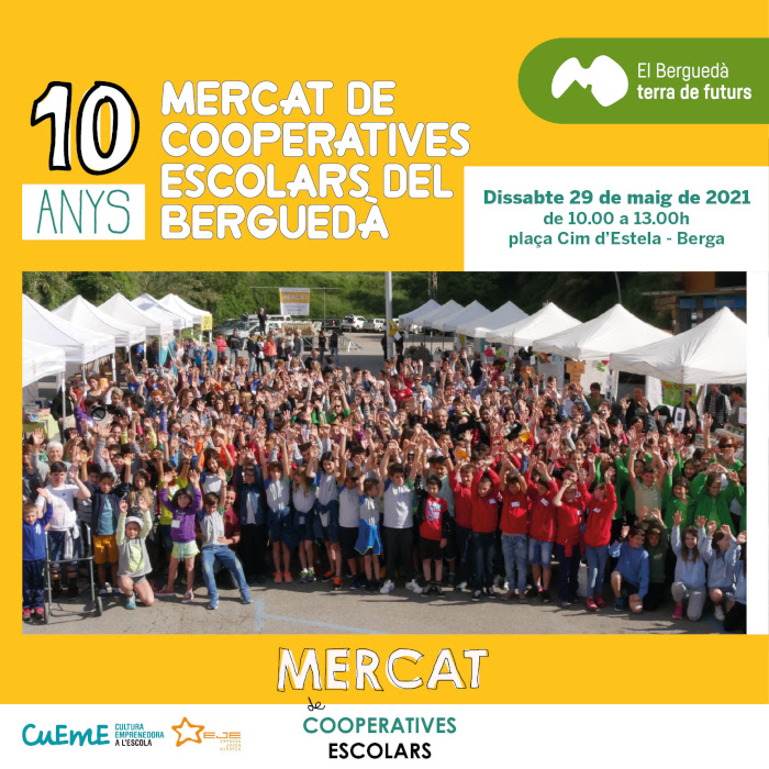 Aquest dissabte 29 de maig, de 10 del matí a 1 del migdia, tindrà lloc el Mercat de Cooperatives Escolars del Berguedà, a la Plaça Cim d’Estela de Berga.
