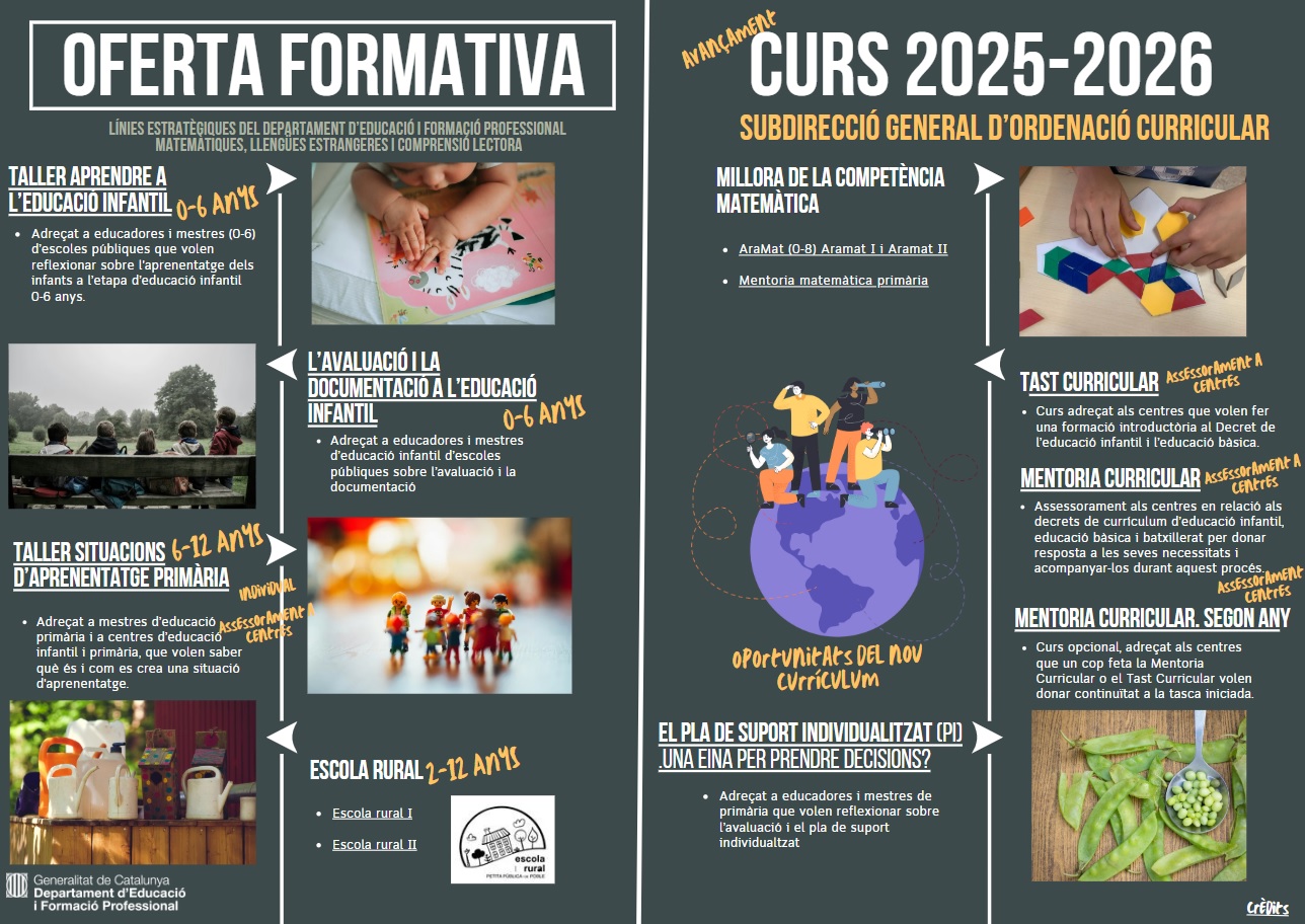 La Subdirecció General d’Ordenació Curricular presenta una nova oferta formativa adreçada als equips docents i als professionals de l’educació amb l’objectiu d’aprofundir en el desenvolupament curricular i impulsar la millora de les pràctiques educatives als centres per al curs 2025-2026.