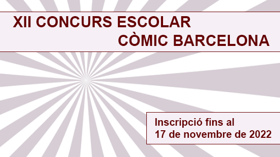 En el marc de la 41a edició de Còmic Barcelona, que tindrà lloc del 31 de març al 2 d’abril de 2023, FICOMIC, amb la col·laboració del Departament d’Educació de la Generalitat de Catalunya, convoca el XII Concurs Escolar Còmic Barcelona per a alumnat de CM i CS d’Educació Primària i ESO