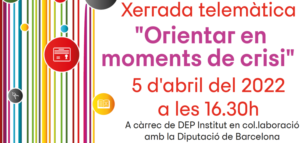 El proper 5 d’abril a les 16.30 tindrà lloc la xerrada telemàtica “Orientar en moments de crisi” dins de les VII Jornades d’orientació educativa a càrrec de DEP Institut en col·laboració amb la Diputació de Barcelona. La xerrada està orientada a professorat, tutors/es i professionals de l’àmbit educatiu que acompanyen als alumnes i joves en […]