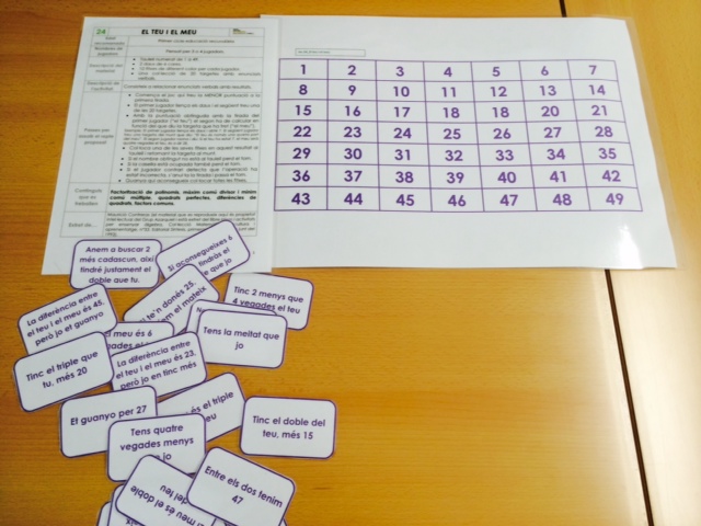 Des del CRP s’ha creat una maleta amb propostes de jocs per treballar amb els alumnes de cicle superior de primària i primer cicle de l’ESO. Aquesta maleta té com a objectiu treballar conceptes d’àlgebra d’una forma més lúdica: fraccions, percentatges, equivalències, operacions combinades, operacions amb decimals, potències, equacions de primer grau,…
