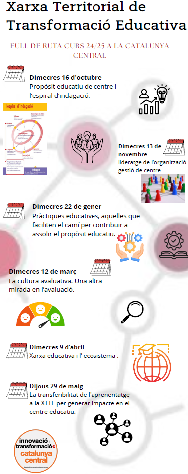La XTTE és una proposta formativa docent que acompanya al centre en el desplegament del currículum des de les 5 dimensions del Marc de la Qualitat Educativa i acompanyar als centres participants a la xarxa en el seu procés de millora.