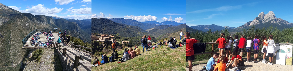 Les Serres del Cadí i del Moixeró tanquen la comarca pel nord, i són uns bons miradors des d’on contemplar el relleu de la comarca. El massís del Pedraforca és un indret ideal per observar el paisatge més alpí, on la roca predomina sobre la vegetació, oferint-nos un paisatge singular i emblemàtic. Més cap a l’est, entre serres, cingleres, boscos i prats, apareix el poble de Castellar de n’Hug on hi brollen les Fonts del riu Llobregat. És un espai magnífic, confluència de natura, societat i paisatge. L’estudi del paisatge des d’aquests dos miradors permetrà establir comparacions amb el del lloc d’origen dels nois i noies, i reflexionar al voltant de la importància de la seva conservació, els seus orígens i el futur cap a on s’encaminen.
