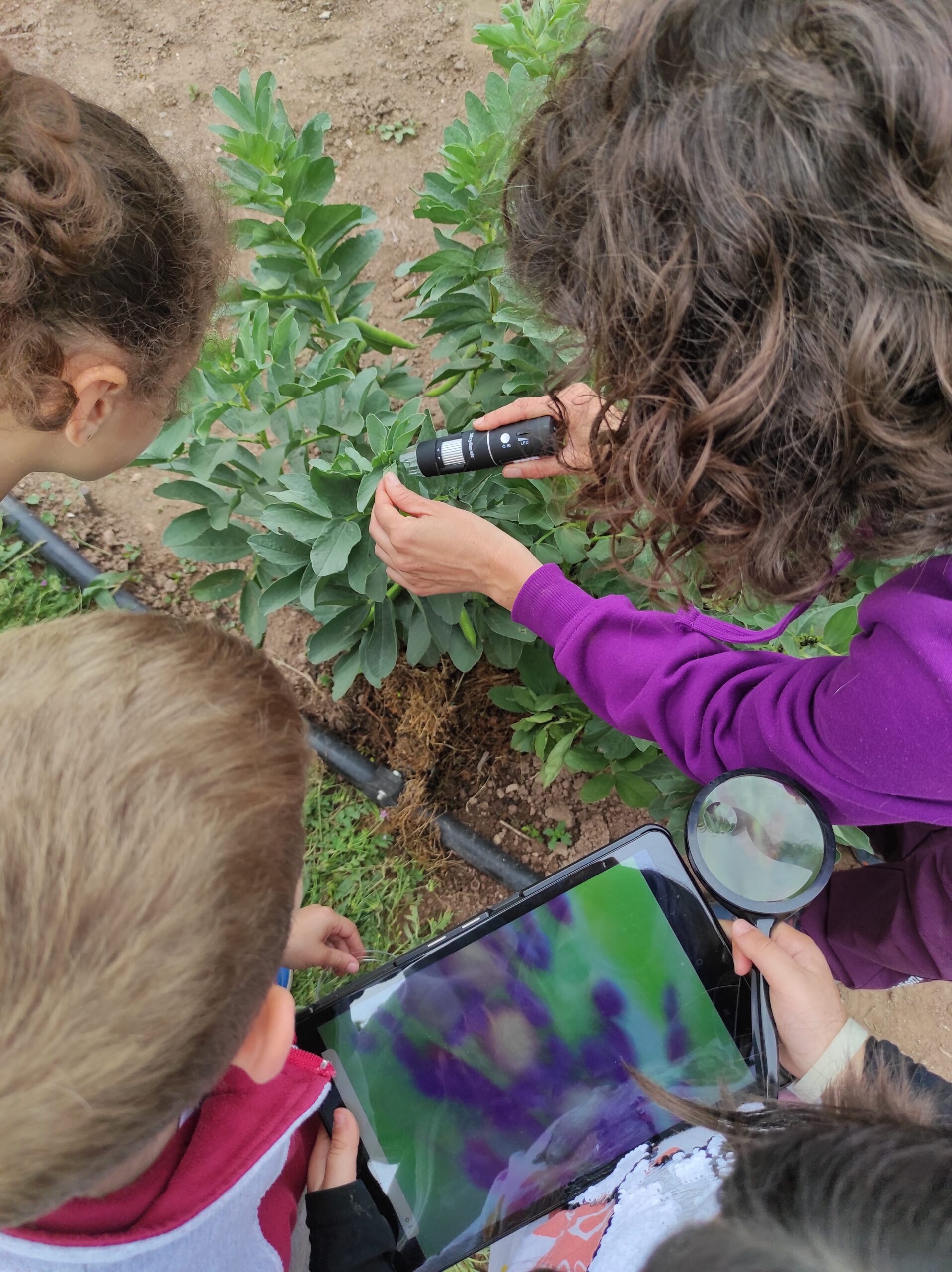 Conèixer l’hort amb els 5 sentits: Amb l’olfacte, olorarem diverses plantes, amb el tacte, tocarem amb cura algunes fulles, amb la vista, descobrirem algunes parts d’hortalisses que ens mengem que no veiem perquè estan sota terra i farem servir el microscopi digital, amb el gust, es podrà tastar alguna hortalissa. I finalment, veuran que amb l’oïda és molt difícil identificar les hortalisses.