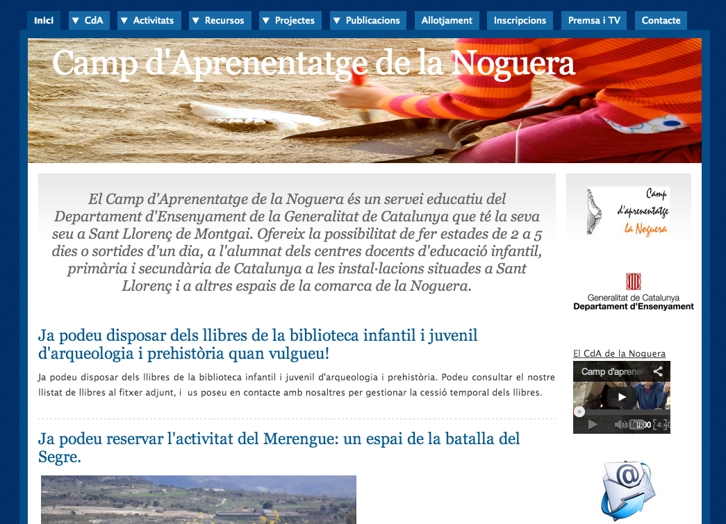 A l’àrea TAC hem rebut varies consultes i amb aquesta plantilla és preten oferir un esquema senzill i complet pels camps que vulguin actualitzar la seva web properament. S’ha apostat per la plataforma WordPress (blocs) al considerar que un camp d’aprenentage és un servei educatiu molt viu on es generen moltes notícies i articles abans, durant i després de la visita d’una escola.