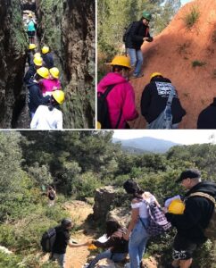 En primer lloc han reflexionat i formulat diverses hipòtesis al voltant d’aquesta formació geològica integrada dins la Serra de Collserola catalogada com a geótop d’interès. A continuació l’han situat geogràficament amb el GPS, han copsat el relleu de la zona i han diferenciat els materials superiors dels inferiors que es veien a simple vista. Agrupats en 2 equips de treball i amb el material que els hem proporcionat (martell de geòleg, ulleres de protecció, àcid clorhídric i aigua) han treballat de valent per analitzar la consistència, la resistència, la impermeabilitat, la ductilitat i la presència de carbonats en ambdós materials. Ni els ha calgut la clau dicotòmica per identificar els materials superiors com a calcàries fossilíferes (amb coralls i conquilles) i els inferiors com a lutites (argiles).