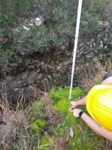 En primer lloc, s’han situat geogràficament amb el GPS, han copsat el relleu de la zona i han diferenciat els materials superiors dels inferiors que es veien a simple vista. Tot i el plugim de primera hora, han treballat de valent per analitzar la consistència, la resistència, la impermeabilitat, la ductilitat i la presència de carbonats en ambdós materials. Dividits en 4 equips de treball i amb els instruments que els hem proporcionat (martell de geòleg, àcid clorhídric, aigua i clau dicotòmica) han identificat els materials superiors com a calcàries fossilíferes (amb coralls i conquilles) i els inferiors com a lutites (argiles).
