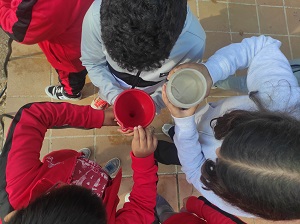 El grup s’ha dividit en tres grans grups per explorar el poder calorífic del sol, els primers han fet de cuiners i cuineres amb un forn solar parabòlic i una olla de color negre, els segons també han cuinat però amb una olla de color blanc! Quines pomes més bones que han cuinat! Un bon postres per després de dinar! El tercer grup ha comprovat com la calor del sol permet escalfar aigua, i és que el color negre + l’efecte hivernacle + l’energia calorífica del sol té un potencial infinit! Aigua per dutxar-se i molt més, més de 70 graus centígrads de temperatura en un parell d’hores! I penseu que estem a la tardor, imagineu-vos a l’estiu quan tenim més hores de sol i més incidència!