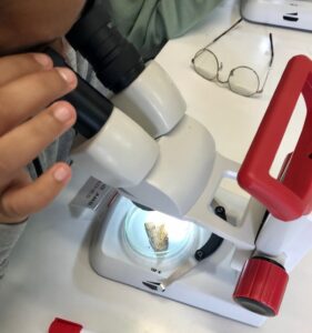 Un cop de nou al Camp d’Aprenentatge han fet una exposició de tots els exemplars recol·lectats. Han investigat a fons un bolet típic, amb peu i barret, que han escollit d’entre totes les mostres, i han completat seva la feina d’investigació observant diversos tipus d’espores al microscopi i veient diferents himenis amb les lupes binoculars.