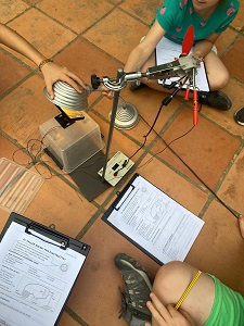 Finalment tots han participat al taller de producció d’electricitat amb les plaques fotovoltaiques. En el taller han construït un petit circuit per veure com la llum del Sol es transforma en un corrent elèctric capaç de moure un petit molinet.