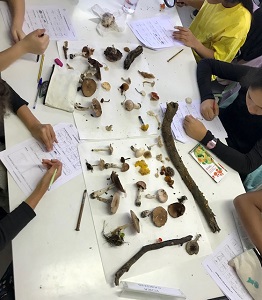 Després d’esmorzar s’han organitzat en grups i amb un cistell han sortit a buscar bolets pels diferents ambients vegetals que es troben al voltant del Pont de la Sibèria, com ara l’alzinar, el bosc de ribera o els camins vora riera. Han fet un inventari posant nom a tots els exemplars trobats i a un full de recol·lecció han anotat tant el tipus de substrat com el de creixement de cadascun dels bolets.