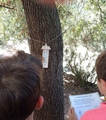 Després, han realitzat una activitat per experimentar amb les pròpies sensacions corporals, utilitzant la pell com si fos un termòmetre. Han expressat la seva percepció de la temperatura exterior mitjançant una escala sensorial. En comparar aquestes sensacions amb les temperatures reals que marcaven els diferents termòmetres, han pogut observar com la percepció varia d’una persona a una altra. A continuació han visitat la caseta meteorològica i han recollit les dades que marcaven els diferents aparells.