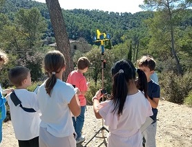 Però per fer una predicció del temps ben acurada, l’alumnat ha après quins instruments s’utilitzen per estudiar quin temps fa mitjançant una gimcana de descoberta d’aparells: el pluviòmetre, els termòmetres d’ambient, d’aigua i terra, el penell i l’anemòmetre! Fins i tot han comprovat la força de la seva bufera.