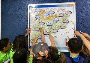 En primer lloc, han treballat com autèntics meteoròlegs i meteoròlogues elaborant una predicció del temps a Catalunya. Per fer-ho, han preparat el mapa de símbols de l’endemà i, per equips, s’han repartit les diferents tasques que són necessàries per poder gravar una predicció del temps com si estiguessin a un plató de televisió professional: presentadors, direcció, apuntador, il·luminació i càmera. Segons la previsió del seu espai informatiu, sembla que tindrem un dimarts plujós a la major part de Catalunya!