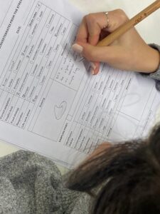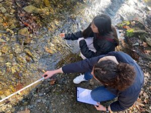 First, they organized themselves into working teams and reviewed the necessary materials to conduct the field study. They examined both physico-chemical parameters (biotope) and biodiversity-related aspects (biocenosis) to determine the water quality of the stream.