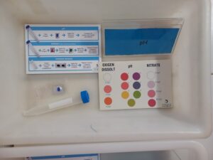 Al laboratori han analitzat les mostres d’aigua per calcular paràmetres com la duresa, la concentració de nitrits, nitrats i fosfats, el pH, l’oxigen dissolt o la conductivitat (per conèixer la mineralització) amb l’ajuda dels kits de valoració del Projecte Rius.