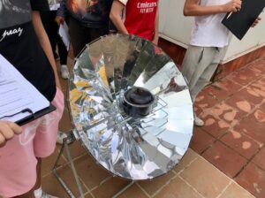 El segon grup ha utilitzat una cuina solar parabòlica que permet coure aliments concentrant la calor provinent del Sol. Els cuiners solars han intentat preparar una recepta de pomes al forn dins una olla negra que malauradament no ha sobrepassat els 25 graus. Tot i les grans avantatges que presenta aquest tipus de cuina han comprovat que depèn totalment de les condicions meteorològiques per un correcte funcionament.