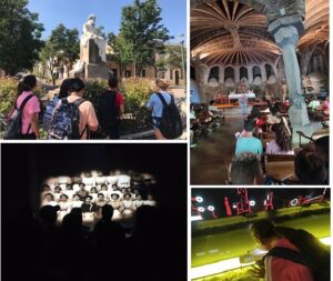 Després de la gimcana de descoberta, l’alumnat ha visualitzat el documental al centre d’interpretació de la colònia, quina vida més diferent a la seva tenien els nens i les nenes de 10 anys! Ja treballaven i tot! Al centre també han explorat el procés industrial de la fàbrica: filatura, tissatge, tinció i assecat de velluts i panes. Finalment, hem investigat els materials reciclats que va fer servir Gaudí per a la construcció de la Cripta i l’estratègia de construcció amb arcs funiculars! Quina bona pensada i quines maquetes més ben estructurades.