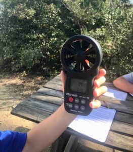 Per començar han vist els diferents aparells que ens permeten conèixer la temperatura (els termòmetres d’aire, de màxima i mínima, d’aigua i de terra), la quantitat de pluja que ha caigut (el pluviòmetre), la velocitat del vent (l’anemòmetre) i la seva direcció (el penell, ajudant-se d’una brúixola per orientar-lo) i l’higròmetre. Han fet una gimcana on han après a utilitzar tots aquests aparells i han registrat totes les dades en una fitxa amb les seves unitats corresponents.