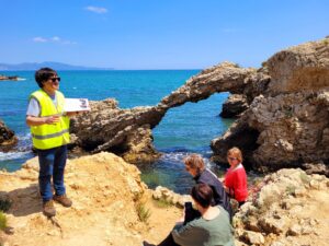 La proposta de Geolodia Girona 2025 va fer descobrir l’abans i el desprès d’Emporion, una mirada des del temps geològics molt més enllà de l’arribada dels grecs foceus a les nostres terres. Amb diferents punts en un itinerari per la duna d’Empúries els més de 200 participants van anar descobrint les singularitats del patrimoni geològic de la zona. Les nostres companyes del Camp d’Aprenentatge, així com la Xon ex-membre del nostre equip, van participar com a monitores i organització de l’esdeveniment en el que el bon temps va fer que la jornada fos rodona. Podeu trobar la guia de camp i la informació d’aquest i els altres geolodies de l’estat Espanyol a la web del geolodia de la SGE.