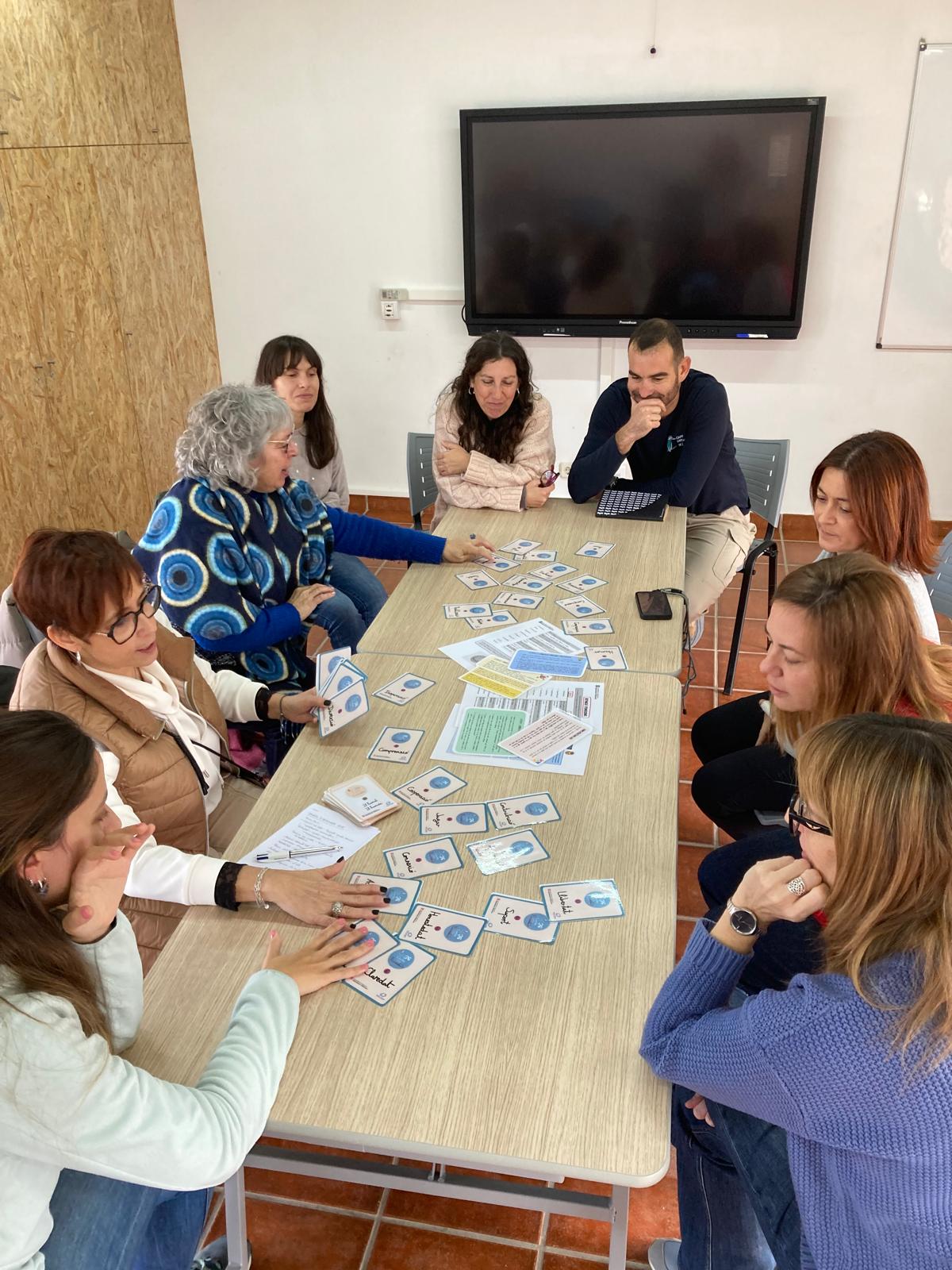 Seguidament, les integrants del SEI van proposar dues dinàmiques sobre enfocament restauratiu. Una d’elles, va girar entorn al recurs Les 36 cartes de les necessitats , una proposta de gamificació en l’educació socioemocional que ens permet conèixer i reconèixer les necessitats tot jugant.